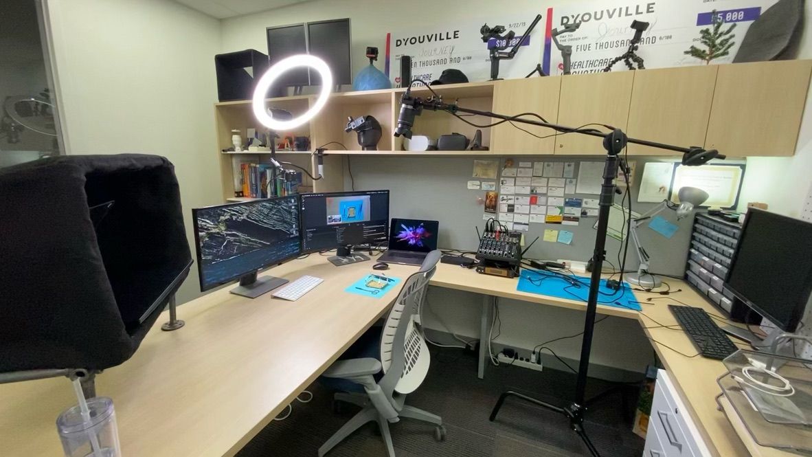 In April 2021, the UB Surgery+ Office is equal parts surgical skills live-stream studio, video editing station, and maker-space.